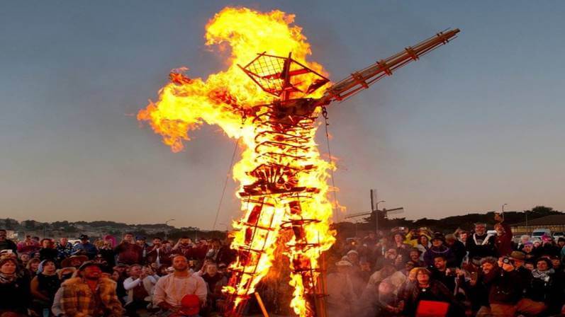 “Burning Man” is a celebration of creativity and community that pops up for nine days every year before Labor Day in the Nevada desert. (Turn right at Reno, go about 100 miles, and when it looks like you’re actually driving on the moon, you’re there.) It started as a simple bonfire for a handful of creatives on San Francisco’s Baker Beach. Since then, it’s become a see-and-be-seen destination for 70,000 social media influencers, celebrities, and Silicon Valley billionaires, with $425 tickets and the “guest of honor” standing up to 105 feet high before the ceremonial Saturday night burn.
